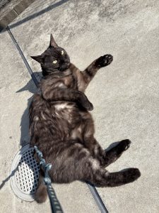 家の中では、太陽の光が当たるところで日向ぼっこしていることが多いです。